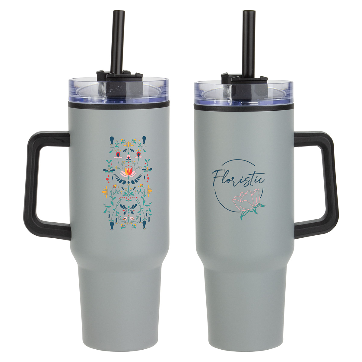 - Black plastic handle & black plastic straw with ring to keep secure