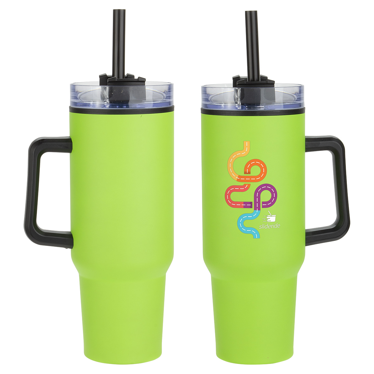 - Black plastic handle & black plastic straw with ring to keep secure