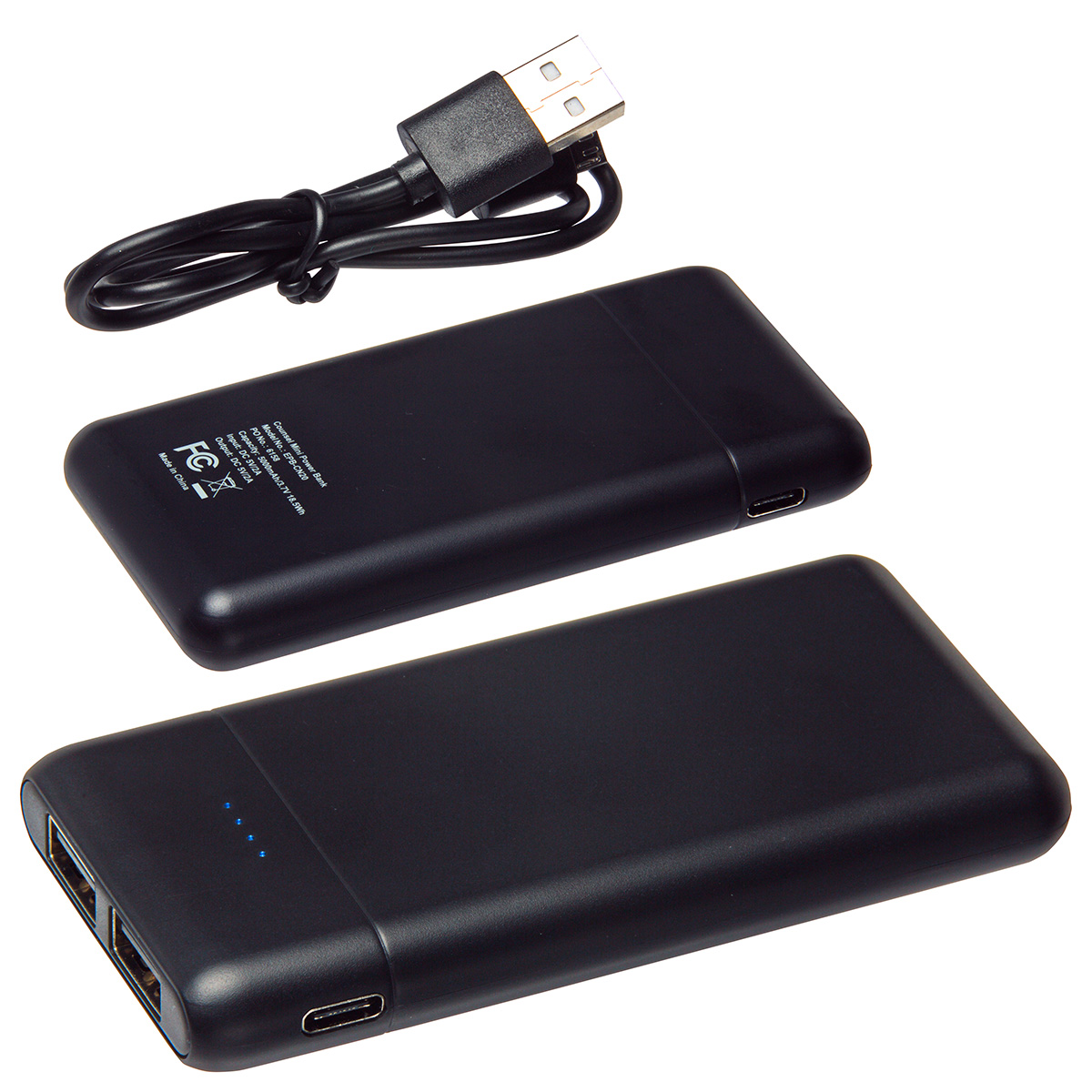 - 5000mAh Compact sized power bank with dual USB ports
