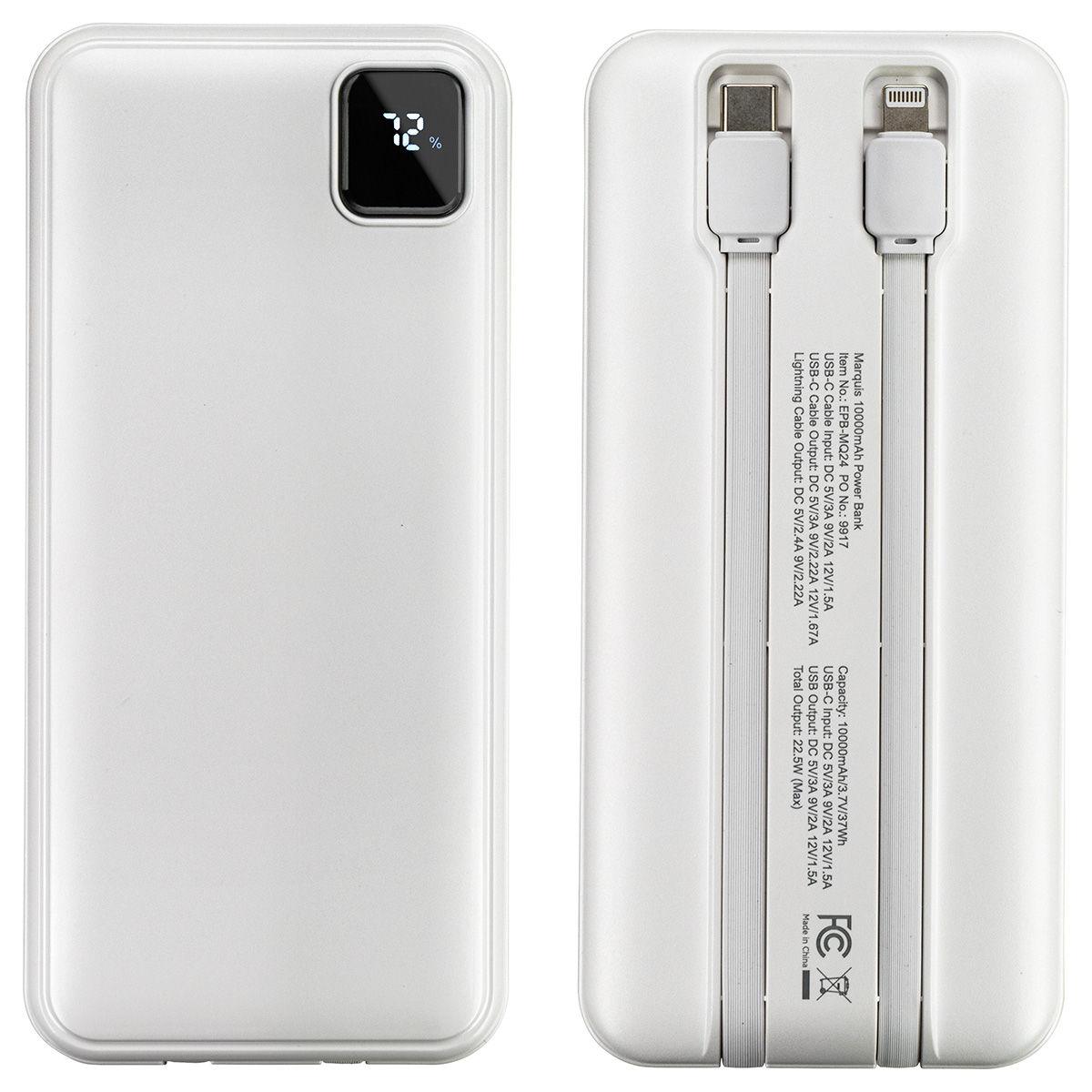 Marquis 10000mAh 20W PD Power Bank with Built-In Cables