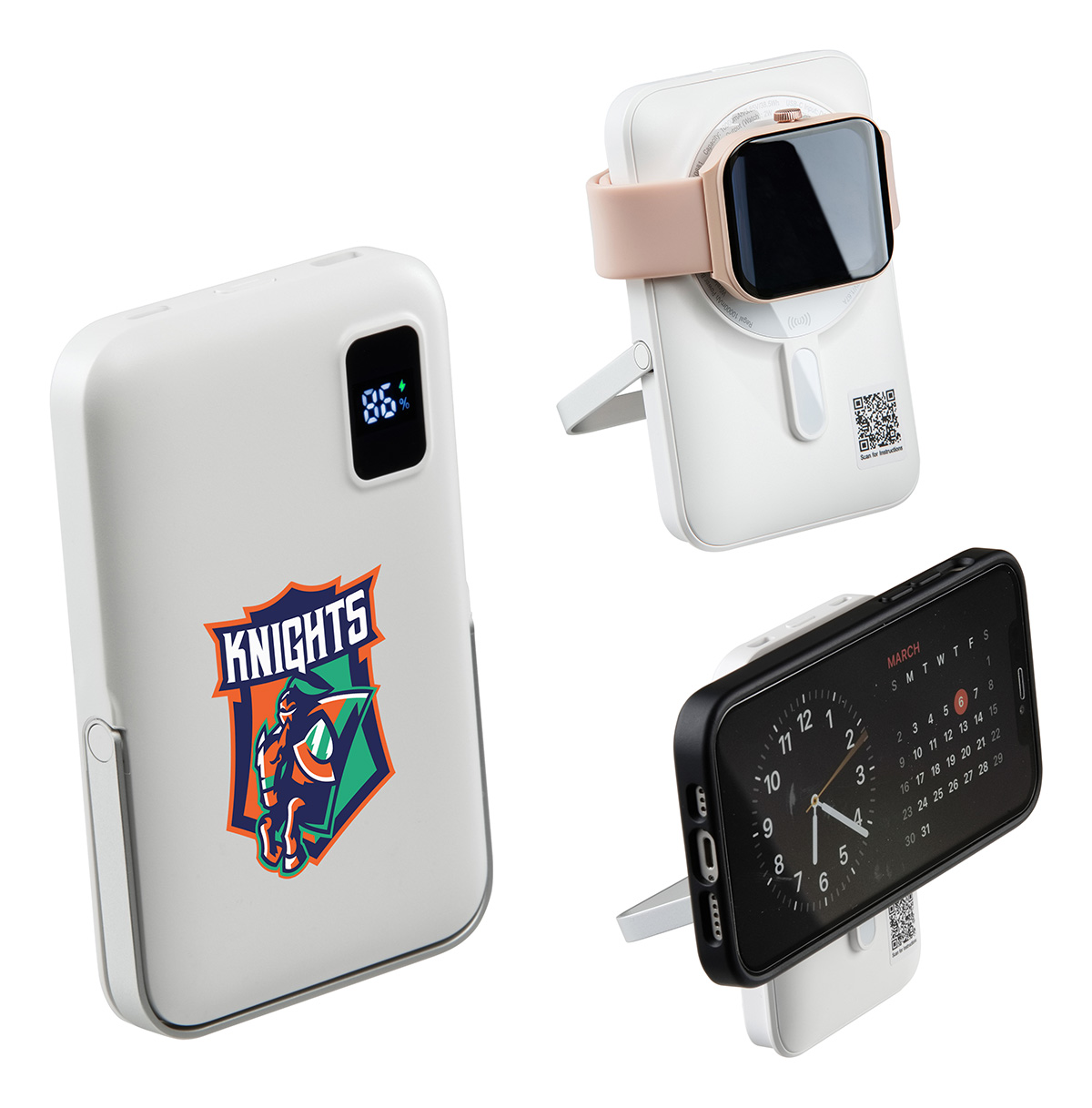 Regal 10000mAh 20W PD Power Bank w/15W Magnetic Wireless Charger, Watch Charger & Phone Stand