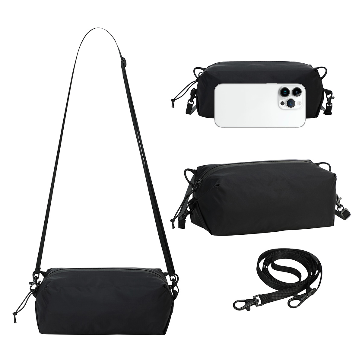 - Designed as a sleek sling zippered bag for easy, on-the-go storage