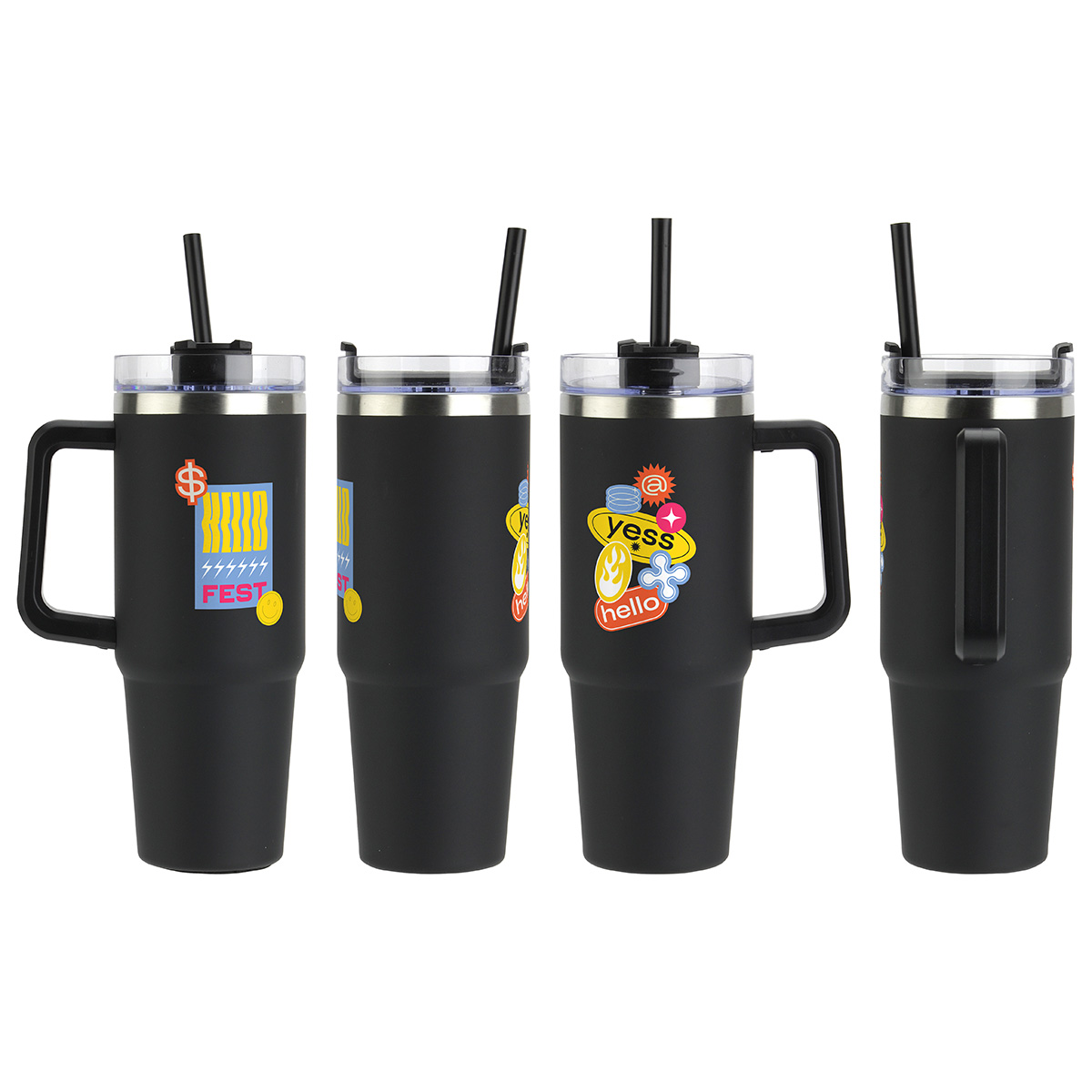 - Color matched plastic handle and straw with ring to keep inside
