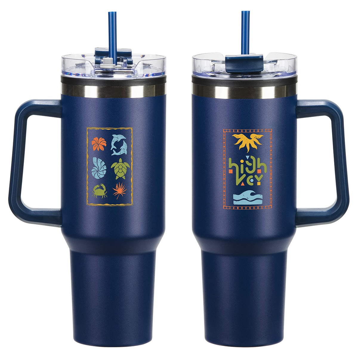 Ohana 40 oz Stainless Steel/Polypropylene Mug with Color-Matching Handle
