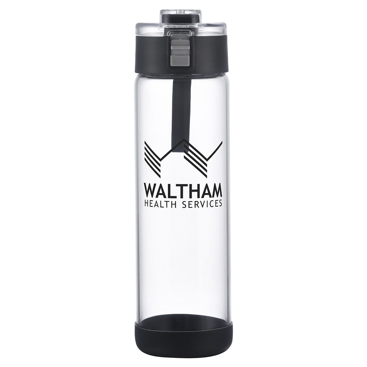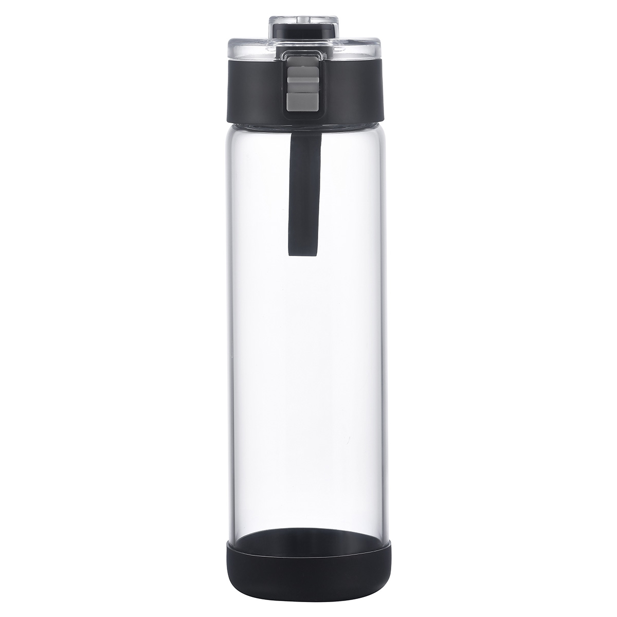Hector 22 oz Push-Button Glass Bottle w/ Silicone Strap & Base