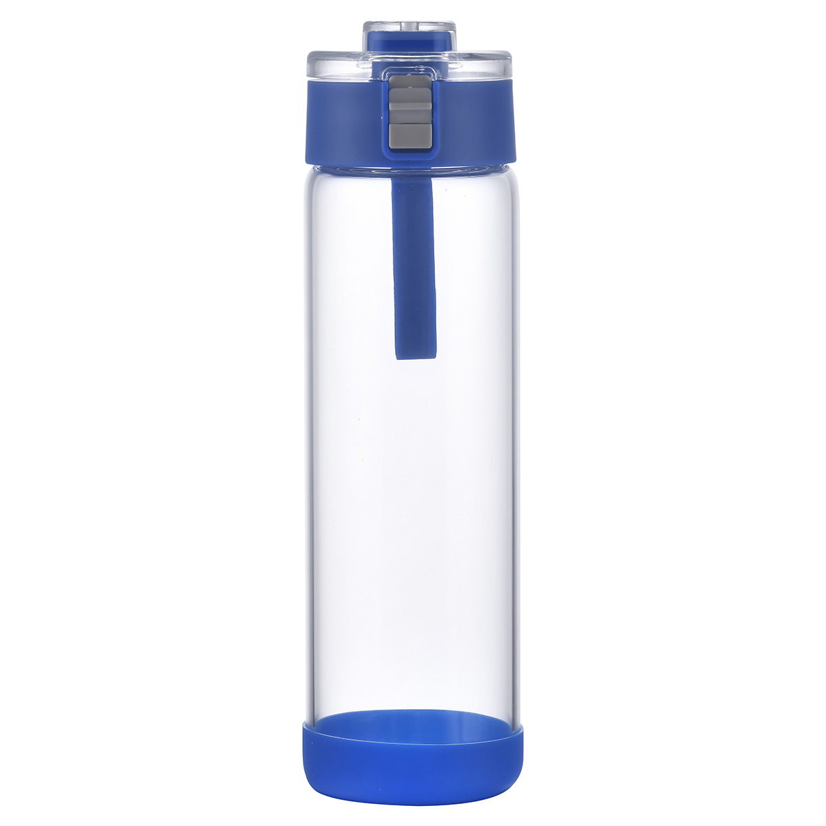 Hector 22 oz Push-Button Glass Bottle w/ Silicone Strap & Base