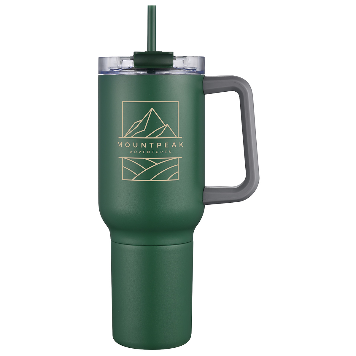 - Dual-purpose design: 20 oz vacuum insulated travel mug with handle and straw plus 12 oz screw-off bottom for use as a can cooler or a snack container