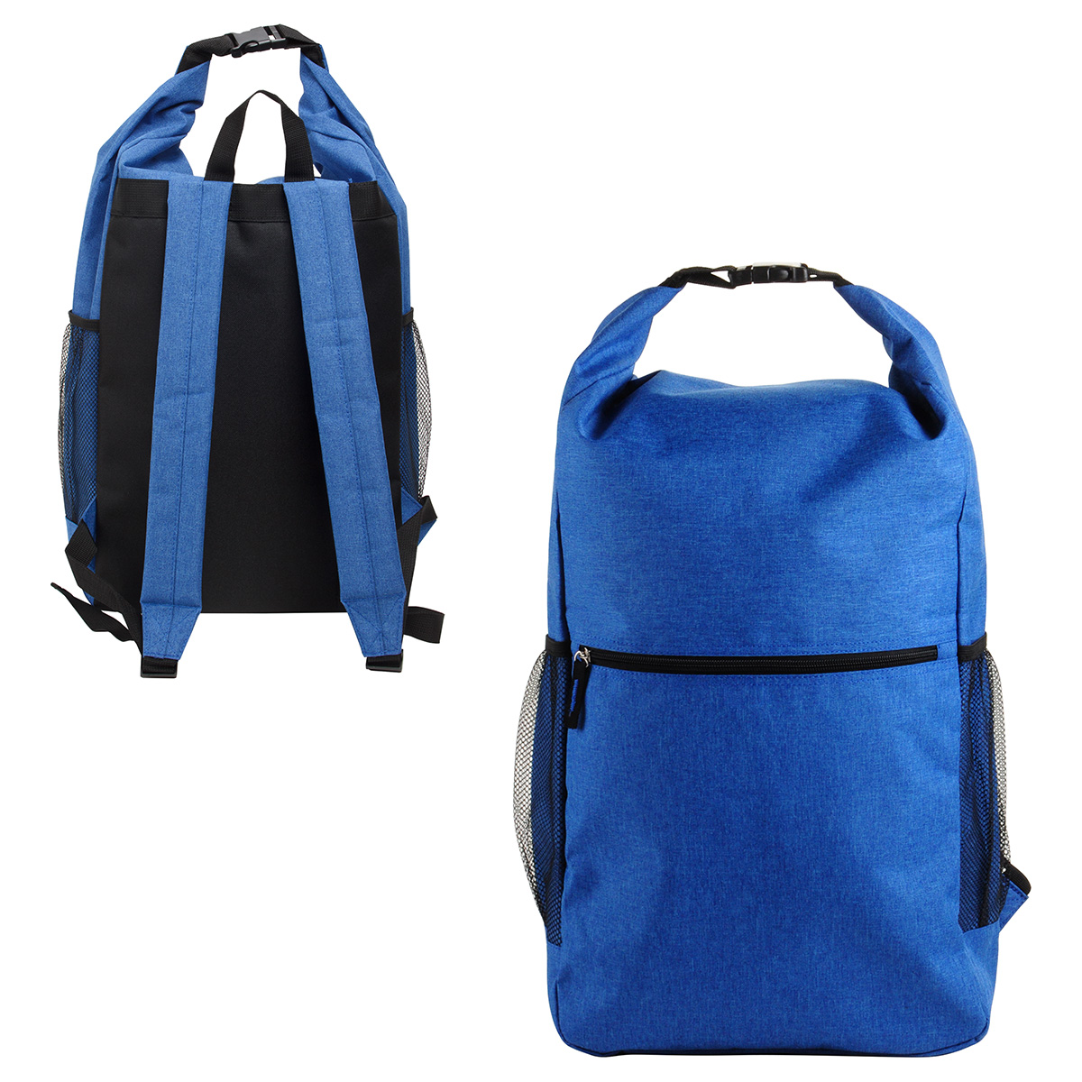 - Large capacity roll top backpack, with secure snap lock