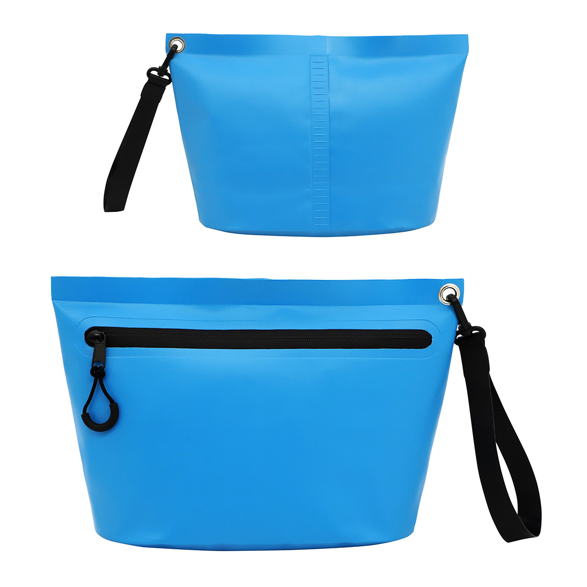 - A functional bag that protects items such as sunscreen, sunglasses, cell phone, credit card or keys from splashed water and sand