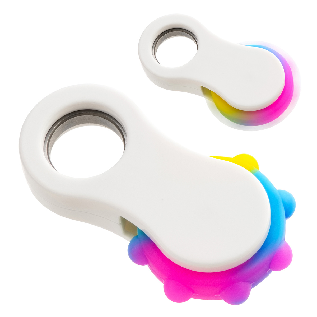 - Dual-function fidget combines a push-pop massage surface with a smooth spinning motion