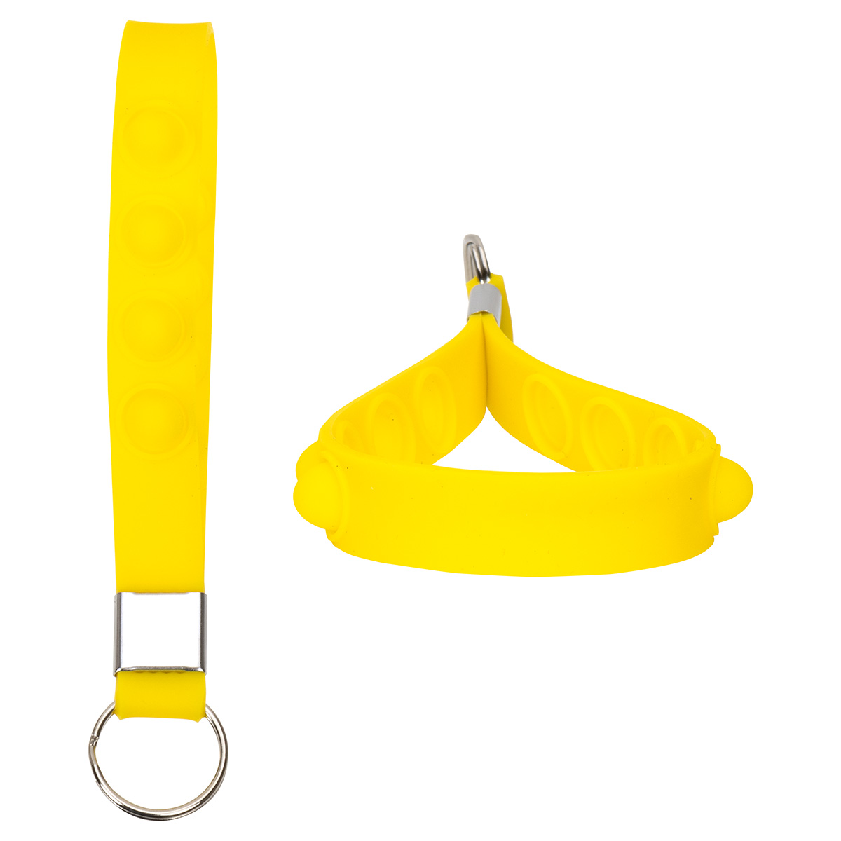 - Combines a stress-relieving pop bubble feature with a practical wristlet for keys and small personal items