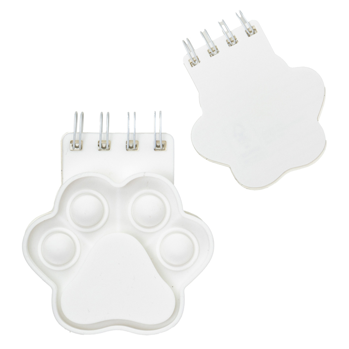 - Paw-shaped spiral notebook with built-in push pop fidget cover