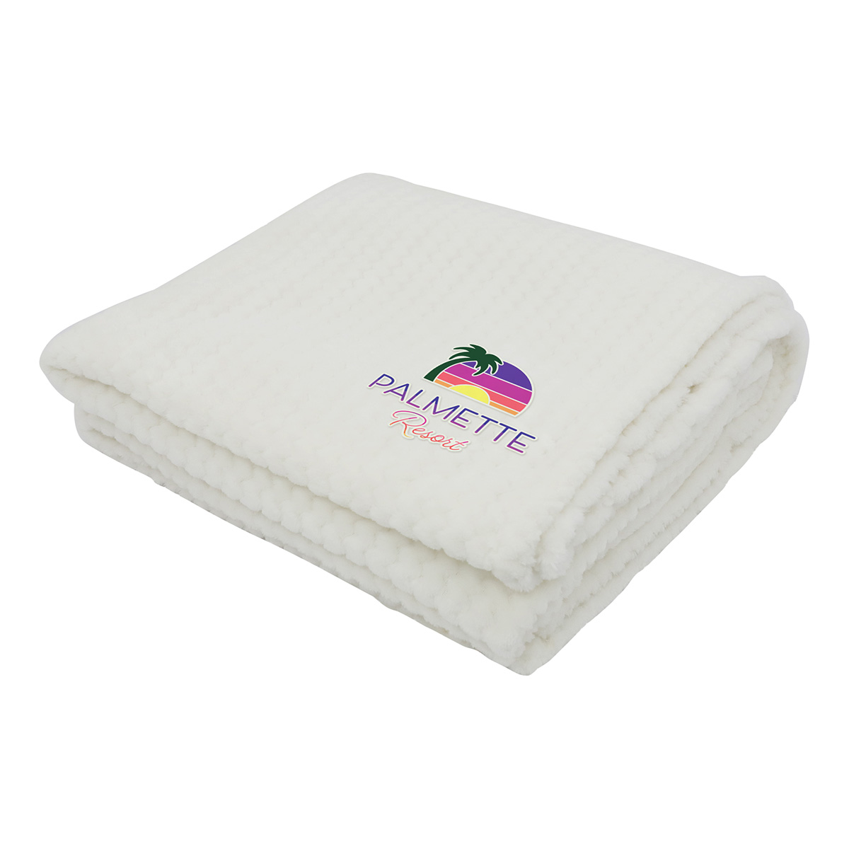 - Soft-textured plush flannel throw blanket is 350GSM with hemmed edge