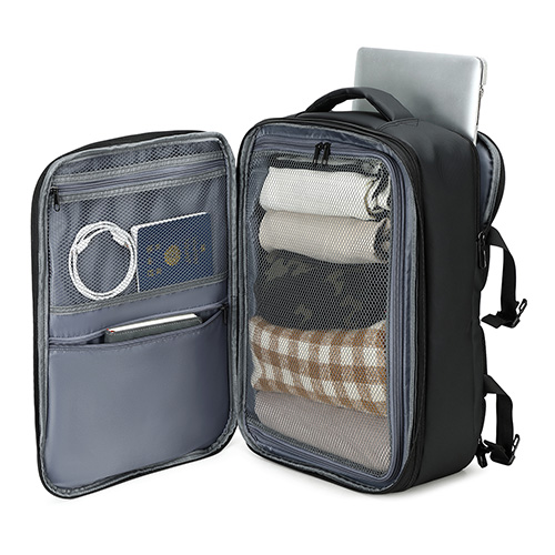 - Interior mesh pockets and organization panels keep clothing, tech, and accessories neatly arranged