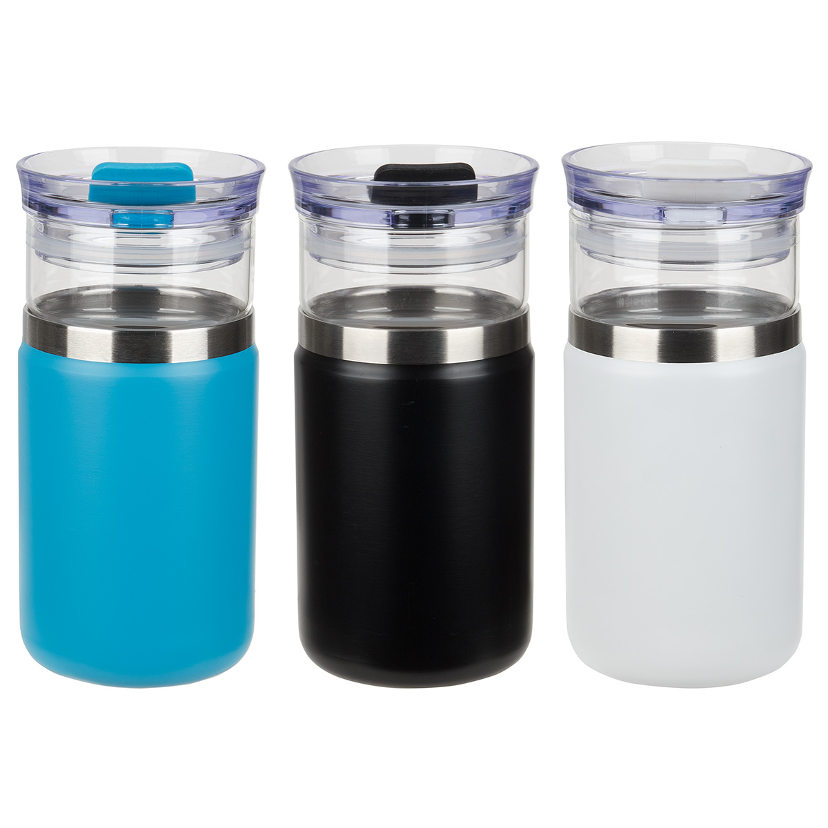- 2-in-1 design allows for use as a 12 oz glass tumbler or 11 oz insulated tumbler