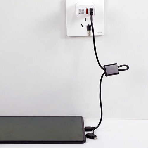 - Compact 4-in-1 charging cable with USB-C and USB input tips for wide compatibility