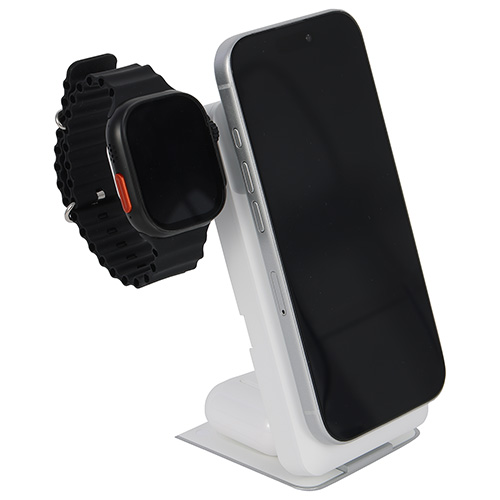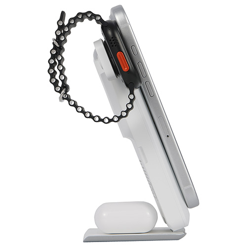 - Built-in wireless charging areas support phones, earbuds, and Apple Watch at the same time
