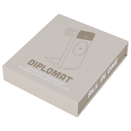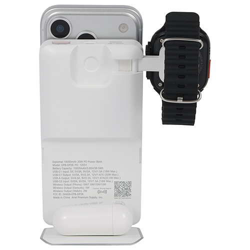 Diplomat 10000mAh 20W PD Power Bank with 15W Wireless Charger, Watch Charger & Stand