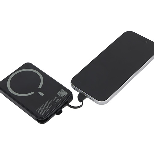 - Recharge the power bank through the integrated USB-C cable
