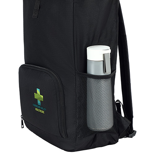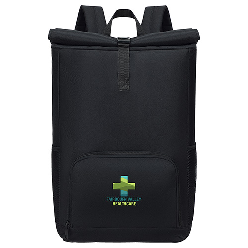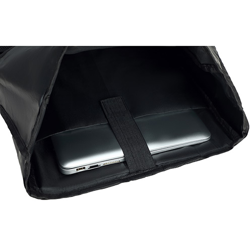 - Durable polyester backpack with modern rolltop design