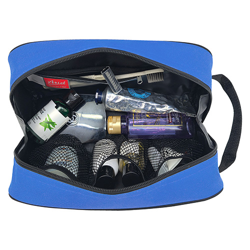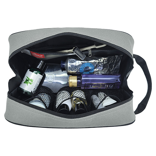 - Spacious double-zippered main compartment keeps toiletries secure and easy to access