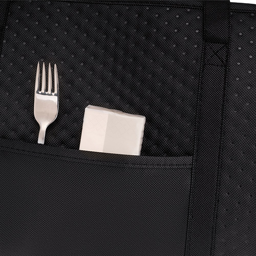 - Front slip pocket provides easy access to napkins, utensils, or small items
