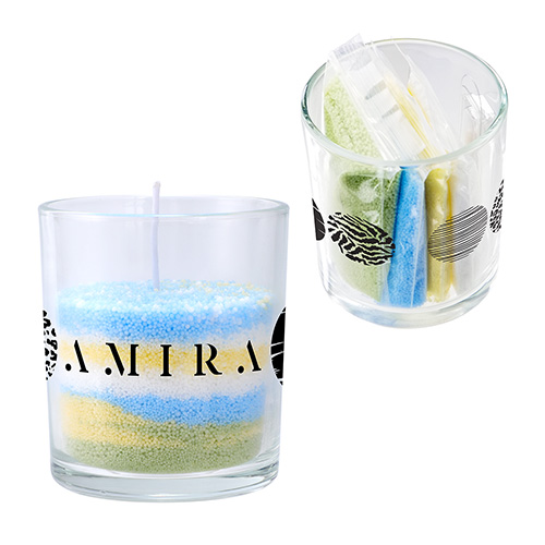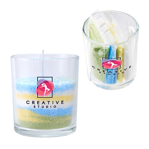 - Includes four colors of sand candle wax (3/4 oz per color / 3 oz total), a clear glass candle cup, and five cotton wicks for multiple creative designs