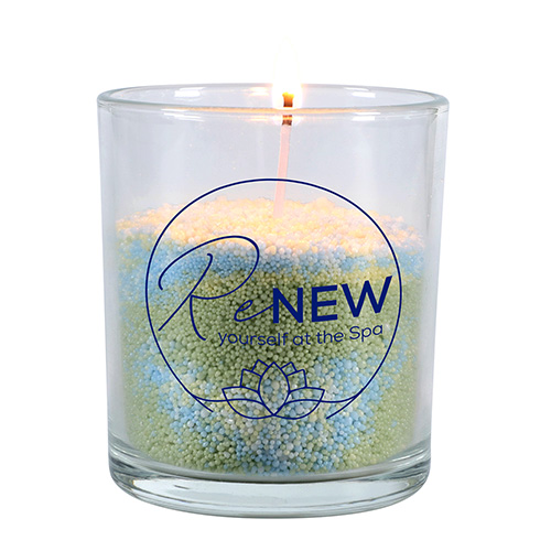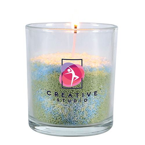 - Clear glass cup showcases the layered sand design for an eye-catching decorative display