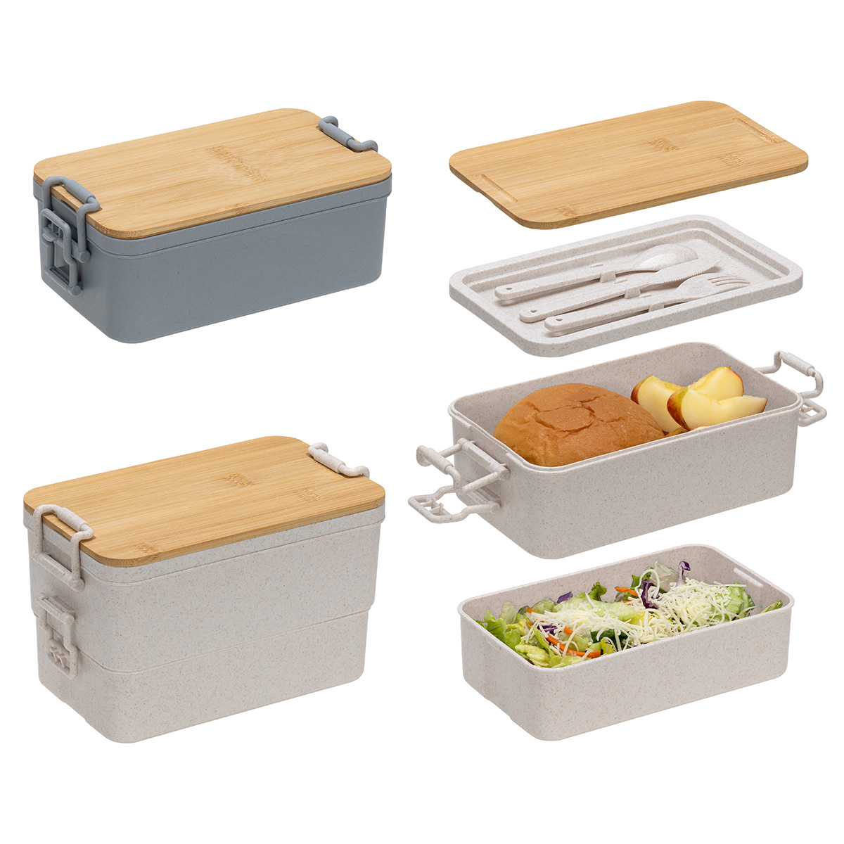 Chuckwagon Stackable Lunch Box With Bamboo Lid & Utensils