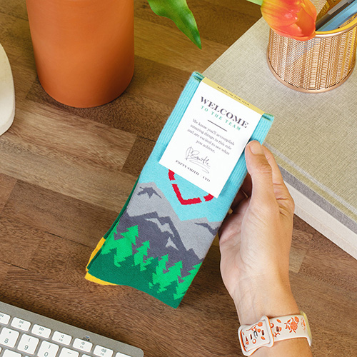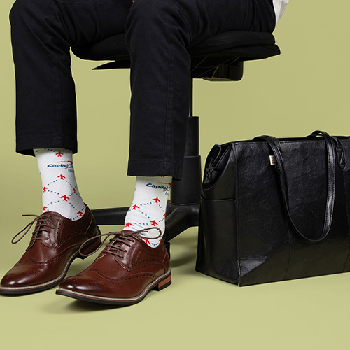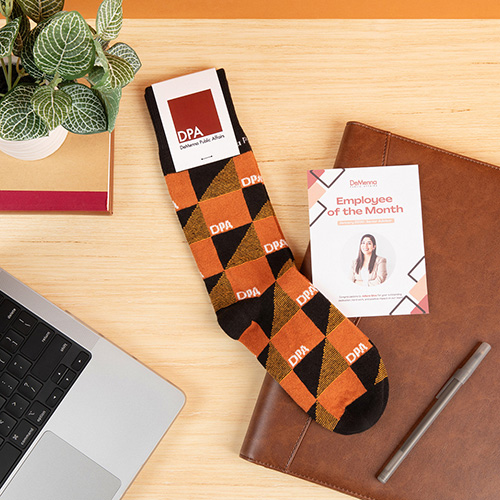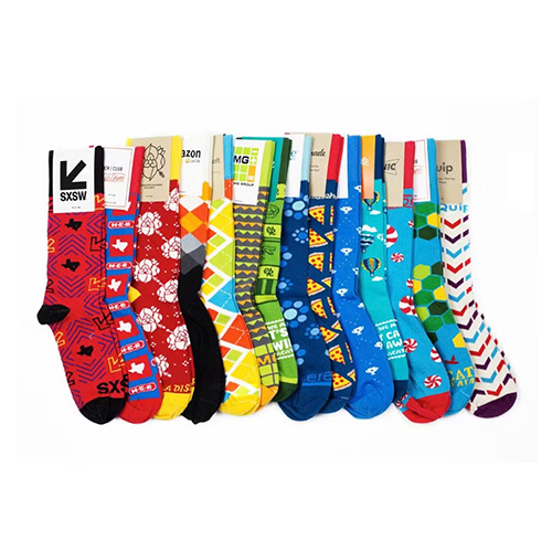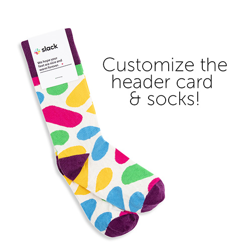 - Pricing includes custom woven socks and a full-color printed header card for added branding impact
